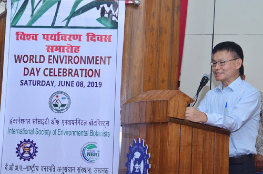 लखनऊ। सीएसआईआर-राष्ट्रीय वनस्पति अनुसंधान संस्थान लखनऊ एवं इंटरनेशनल सोसाइटी ऑफ़ एनवायरनमेंट बॉटनिस्ट्स लखनऊ ने विश्व पर्यावरण दिवस समारोह का आयोजन किया, जिसमें डॉ अशिहो ए माओ निदेशक भारतीय वानस्पतिक सर्वेक्षण, पर्यावरण, वन एवं जलवायु परिवर्तन मंत्रालय भारत सरकार मुख्य अतिथि के रूपमें उपस्थित थे। इस अवसर पर लोगों को पर्यावरण के प्रति जागरुक बनाने हेतु संस्थान के पर्यावरण सूचना प्रणाली केंद्र ने पौधे और प्रदूषण विषय पर एक पोस्टर प्रदर्शनी लगाई, जिसमें पौधों से पर्यावरण प्रदूषण निवारण दर्शाया गया। कार्यक्रम में संस्थान ने पर्यावरण क्विज प्रतियोगिता के विजेताओं को पुरस्कृत किया। इंटरनेशनल सोसाइटी ऑफ़ एनवायरनमेंट बॉटनिस्ट्स के सचिव डॉ आरडी त्रिपाठी ने कार्यक्रम की रूपरेखा प्रस्तुत की।