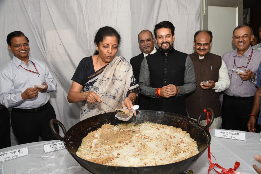 वित्तमंत्री ने अधिकारियों और कर्मचारियों को हलवा परोसा