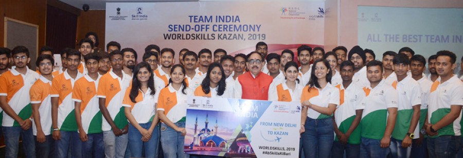 नई दिल्ली। विश्व कौशल प्रतियोगिता-2019 में शामिल होने भारत की ओर से जा रहे 48 सदस्यीय दल को राजधानी दिल्ली में एक समारोह में भव्य विदाई दी गई। दुनियाभर में अपने कौशल का डंका बजाने के लिए भागीदारों को प्रेरित करने के उद्देश्य से समारोह का आयोजन कौशल विकास एवं उद्यमिता मंत्रालय के अंतर्गत राष्ट्रीय कौशल विकास निगम ने किया था। प्रतियोगिता में भाग लेने वाला भारत छठा सबसे बड़ा दल है। रूस के कजन में 22 अगस्त से 27 अगस्त तक चलने वाले इस बड़े कार्यक्रम में 56 कौशल प्रतियोगिताएं होंगी, जिसमें 60 देशों के लगभग 1500 प्रतियोगी हिस्सा लेंगे।