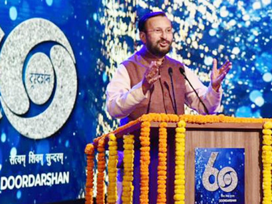 नई दिल्ली। केंद्रीय सूचना और प्रसारण मंत्री प्रकाश जावड़ेकर ने दूरदर्शन की स्थापना के 60 वर्ष पूरे होने पर आयोजित समारोह में भाग लिया और दूरदर्शन की 60 वर्ष में निभाई गई भूमिका को रेखांकित किया। उन्होंने दूरदर्शन के पुराने कार्यक्रमों की याद दिलाते हुए कहा कि किस तरह दूरदर्शन दशकों से लोगों का मनोरंजन करता आ रहा है। उन्होंने दूरदर्शन की नई प्रौद्योगिकी अपनाए जाने का जिक्र करते हुए कहा कि आज दूरदर्शन डिजिटल माध्यमों के जरिए लोगों की हथेलियों पर मोबाइल एप के रूपमें पहुंच गया है। उन्होंने इस अवसर पर डीडी फ्री डिश के तेजी से हो रहे विस्तार और इसपर ज्यादा से ज्यादा चैनलों द्वारा खुद को दिखाए जाने की होड़ का भी उल्लेख किया।