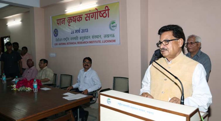 लखनऊ। औद्योगिक अनुसंधान परिषद, राष्ट्रीय वनस्पति अनुसंधान संस्थान लखनऊ के बंथरा अनुसंधान केंद्र पर पान कृषकों हेतु 28 मार्च को एक दिवसीय संगोष्ठी का आयोजन किया गया, जिसमें प्रदेश के विभिन्न जिलों के लगभग 200 पान कृषकों ने सहभागिता की। इस वर्ष अत्यधिक ठंड के कारण पान कृषि को बहुत ज्यादा नुकसान हुआ था और पान कृषकों के पास बुवाई हेतु बेल की अत्यधिक कमी हो गई थी, अतः राष्ट्रीय वनस्पति अनुसंधान संस्थान लखनऊ ने पान की बेल उपलब्ध करने का निर्णय लिया। इस मौके पर राष्ट्रीय अनुसूचित जाति आयोग के अध्यक्ष और सांसद पीएल पुनिया ने पान कृषकों को संस्थान में उपार्जित उत्तम पान की बेल वितरित की। उन्होंने एक नवनिर्मित पान संवर्धन एवं संरक्षणशाला का शिलान्यास कर पान की बेल का रोपण किया और संस्थान के प्रयासों की सराहना की।