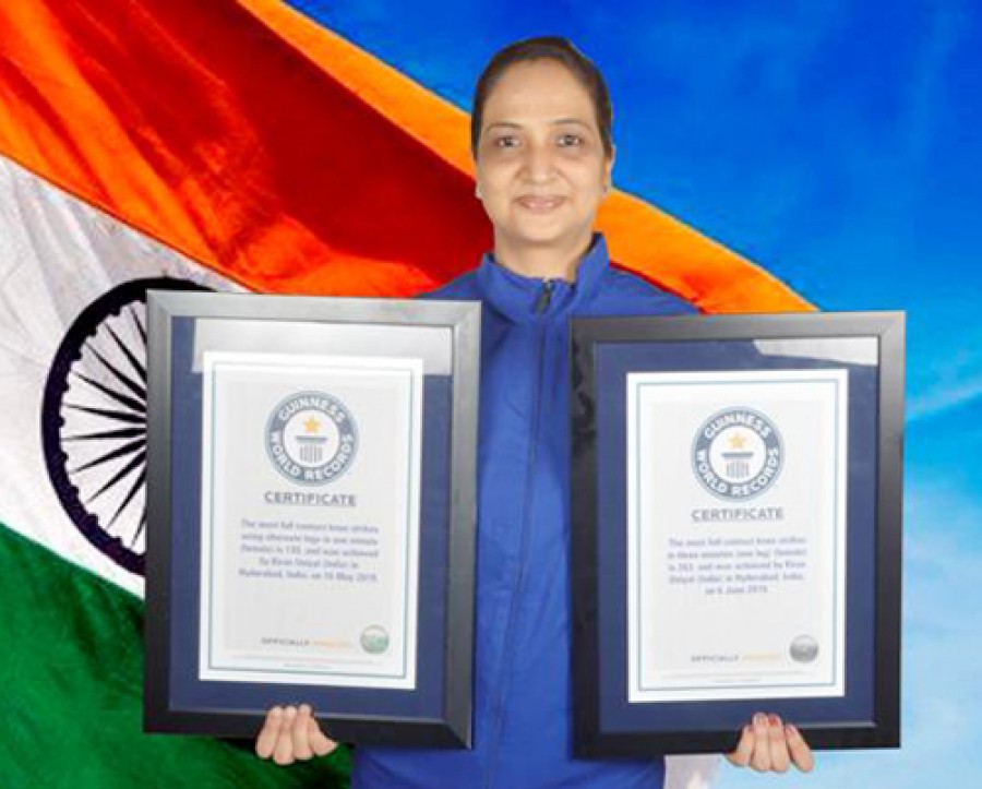 नई दिल्ली। भारतीय सेना में कार्यरत कर्नल की पत्नी किरण उनियाल ने महिला वर्ग में तीन मिनट में एक पैर के घुटने से 263 वार और एक मिनट में बारी-बारी से दोनों घुटनों से 120 वार करने के दो व्यक्तिगत गिनीज वर्ल्ड रिकॉर्ड बनाए हैं। इसके पहले इसी वर्ग में उनका 177 वार और 102 वार करने का रिकॉर्ड था। उनके दोनों रिकॉर्डों का लक्ष्य लड़कियों और महिलाओं को आत्मरक्षा के लिए मार्शल आर्ट को प्रोत्साहन देना है। तीन मिनट में एक पैर के घुटने से 263 वार का रिकॉर्ड बनाने के क्रम में उन्होंने पुरुष वर्ग के 226 वार के मौजूदा रिकॉर्ड को पीछे छोड़ दिया है।
