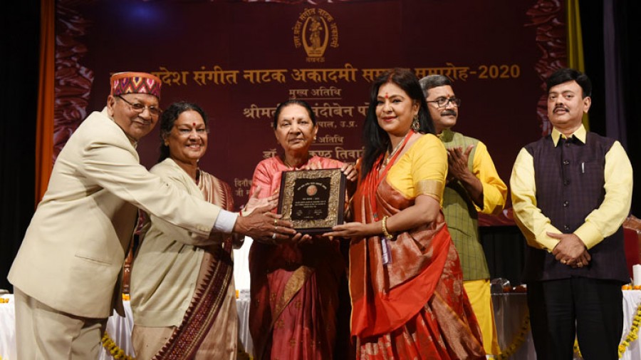 राज्यपाल आनंदीबेन पटेल ने कहा कि उत्तर प्रदेश एक विशाल सांस्कृतिक क्षेत्र है, जिसकी विविध समृद्ध सांस्कृतिक परम्पराओं के प्रशिक्षण एवं संवर्द्धन की दिशा में अभी बहुत कुछ किया जाना है। उन्होंने इस बात पर प्रसन्नता व्यक्त की कि संगीत नाटक अकादमी उत्तर प्रदेश में कला के प्रति जागरुकता लाने, नवोदित प्रतिभाओं को प्रोत्साहित करने, विलुप्त हो रही विधाओं के प्रशिक्षण एवं प्रदर्शन में अनुकरणीय योगदान दे रही है। आनंदीबेन पटेल ने अकादमी अभिलेखागार में संग्रहित समस्त संगीत, नृत्य एवं नाट्य कार्यक्रमों की आडियो-वीडियो हेतु अकादमी को विशेष रूपसे बधाई दी। राज्यपाल ने उत्तर प्रदेश संगीत नाटक अकादमी के वर्ष-2009 से 2019 तक के अकादमी सम्मान, सफदर हाशमी पुरस्कार, बीएम शाह एवं रत्न सदस्य सम्मान प्रदान किए।