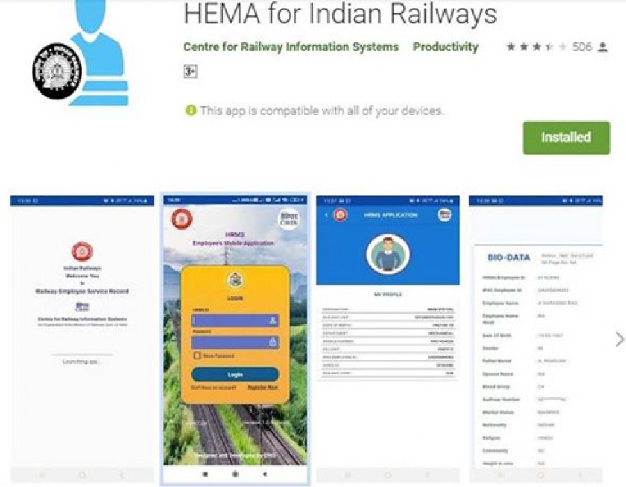 नई दिल्ली। रेलवे बोर्ड के अध्यक्ष विनोद कुमार यादव ने आज एक कार्यक्रम में एचआरएमएस मोबाइल ऐप लांच किया है, जिसे सेंटर फॉर रेलवे इंफॉर्मेशन सिस्टम (क्रिस) ने डिजाइन और विकसित किया है। इससे भारतीय रेल के सभी कर्मचारी अपनी सेवा से संबंधित डाटा देख सकेंगे और यदि आवश्यक हो तो किसी परिवर्तन के लिए प्रशासन से सम्पर्क भी कर सकते हैं। मोबाइल एप्लीकेशन कर्मचारी को रेलवे में पदभार ग्रहण करने की तिथि से अपने ऐतिहासिक डाटा को देखने की अनुमति देता है, इसमें वेतन वृद्धि, पदोन्नति, पुरस्कार, स्थानांतरण, पदस्थापन, छुट्टी, प्रशिक्षण और रिकॉर्ड के अनुसार परिवार के गठन तथा सेवानिवृत्ति लाभ के लिए नामांकन से संबंधित विवरण शामिल हैं। अभी तक यह सूचना कर्मचारी को उपलब्ध नहीं थी। एप्लीकेशन प्रशासन में पारदर्शिता लाएगा और रेलवे कर्मचारियों तथा प्रशासन के बीच एकल संचार के रूपमें काम करेगा।