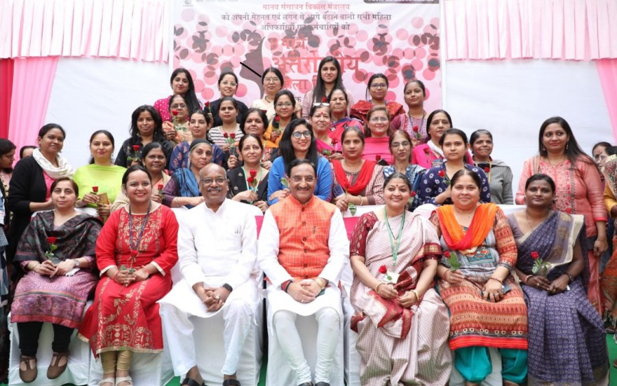 मानव संसाधन विकास राज्यमंत्री संजय धोत्रे भी इस अवसर पर उपस्थित थे। उन्होंने कहा कि महिलाओं के साथ बेहतर व्यवहार करने वाले समाज समृद्ध हुए हैं, महिलाओं की क्षमता से समाज को काफी लाभ होता है, मां सभी के जीवन को छूती है और सबकी पहली और सर्वश्रेष्ठ शिक्षक होती है। उन्होंने कहा कि आज विश्व में कोई भी क्षेत्र महिलाओं के योगदान से अछूता नहीं है और हमारे देश में महिलाओं ने विभिन्न क्षेत्रों में उत्कृष्ट प्रदर्शन किए हैं, उनका देश की प्रगति में अनुकरणीय योगदान है। उन्होंने कहा कि मानव संसाधन विकास मंत्रालय की महिला कर्मचारियों के साथ मंत्रालय के कामकाज की बातचीत करके उन्हें प्रसन्नता हुई है। उन्होंने महिलाओं को फूल देकर उनके प्रति सम्मान व्यक्त किया। रमेश पोखरियाल और संजय धोत्रे ने महिला अधिकारियों के साथ सेल्फी भी ली।