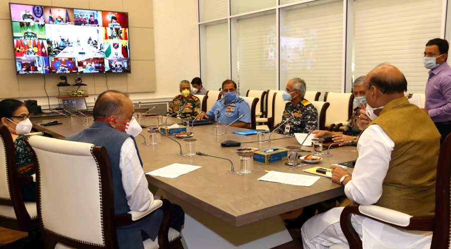 रक्षामंत्री राजनाथ सिंह ने सशस्त्र बलों से अपेक्षा की कि वे किसी आकस्मिक स्थिति से निपटने की तैयारियों को सुनिश्चित करें, ऐसे समय में जब वे कोविड-19 से जूझ रहे हैं। उन्होंने कहा कि विरोधी को मौजूदा स्थिति का फायदा उठाने की अनुमति नहीं दी जानी चाहिए। उन्होंने कोविड-19 के कारण आर्थिक बोझ के मद्देनज़र वित्तीय संसाधनों को खर्च करने और अपव्यय को रोकने के उपाय करने के लिए सैन्यबलों को निर्देश भी दिया। सशस्त्र बलों की आपसी संयोजन की आवश्यकता पर जोर देते हुए रक्षामंत्री ने चीफ कमांडरों को उन कार्यों की पहचान करने और प्राथमिकता देने को कहा जो लॉकडाउन हटने के बाद अर्थव्यवस्था के पुनरुद्धार में मदद कर सकते हैं और जिन्हें कम समय में पूरा किया जा सकता है। चीफ कमांडरों ने रक्षामंत्री को सशस्त्र बलों में वायरस के संक्रमण को रोकने और स्थानीय नागरिक प्रशासन को दी जाने वाली सहायता के लिए किए गए विभिन्न उपायों से अवगत कराया। इनमें कोविड-19 पर मानक संचालन प्रक्रिया, स्वास्थ्य और परिवार कल्याण मंत्रालय तथा अन्य एजेंसियों की सलाह के अनुसार प्रोटोकॉल और ड्रिल में किए गए संशोधन तथा सम्बंधित कमान क्षेत्रों में रहनेवाले पूर्व सैनिकों और उनके परिजनों की देखभाल करना शामिल है।