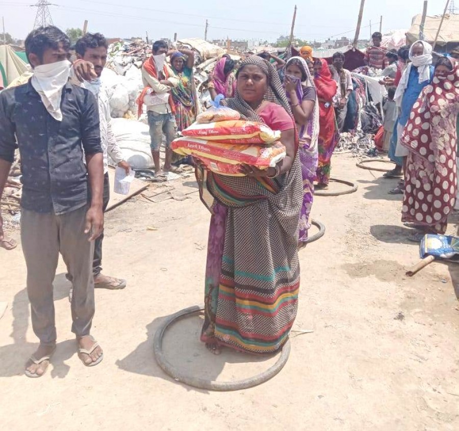 नोयडा। दिहाड़ी मजदूरी एवं कंपनियों में काम करके रोज पैसा कमाने वाले लोगों को लॉकडाउन में काम न मिलने की वजह से परिवार और अपना भरण पोषण मुश्किल हो गया है। बहुत सारे परिवार ऐसे हैं जिनको दो वक्त का खाना भी नसीब नहीं है। भुखमरी जैसे हालात से गुज़र रहे नोयडा सेक्टर 49 की जेजे कॉलोनी एवं सेक्टर 81 सलारपुर मेट्रो स्टेशन के पास स्लम एरिया के ऐसे 127 ग़रीब मजदूर परिवारों को आत्मशक्ति ट्रस्ट ने कल प्रति परिवार 15 किलो आटा, 2 किलो दाल एवं 500 ग्राम नमक का वितरण किया। आत्मशक्ति ट्रस्ट के सीनियर प्रोग्राम मैनेजर संतोष कुमार ने बताया कि आत्मशक्ति ट्रस्ट लॉकडाउन के बाद से लगातार गाज़ियाबाद के गाजीपुर, साहिबाबाद लोनी, गौतमबुद्ध नगर के नोयडा एवं ग्रेटर नोयडा तथा गुरुग्राम के भोंडसी में ग़रीब-मज़दूर समुदाय की भोजन राशन देकर मदद कर रहा है।