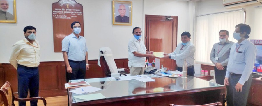 नई दिल्ली। रसायन और उर्वरक मंत्रालय के औषध विभाग के अधीन भारतीय औषध सार्वजनिक क्षेत्र उपक्रम ब्यूरो (बीपीपीआई) ने कोविड-19 के खिलाफ लड़ाई में भारत सरकार को समर्थन देने के लिए पीएम केयर्स फंड में 25 लाख रुपये का योगदान दिया है। केंद्रीय रसायन एवं उर्वरक मंत्री डीवी सदानंद गौड़ा को नई दिल्ली में फार्मा सचिव पीडी वाघेला ने यह राशि चेक सौंपा। इस अवसर पर बीपीपीआई के सीईओ सचिन सिंह, फार्मा के जेएस रजनीश तिंगल, फार्मा के जेएस नवदीप रिनवा और वरिष्ठ अधिकारी भी उपस्थित थे। बीपीपीआई के कर्मचारियों और जनऔषधि केंद्रों के मालिकों व वितरकों ने इस धनराशि में योगदान दिया है।