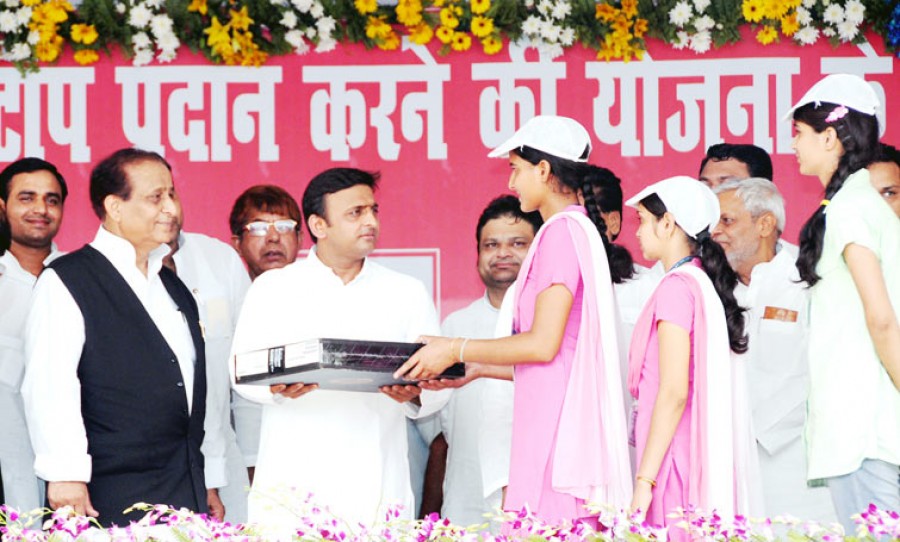 गाजियाबाद। उत्तर प्रदेश के मुख्यमंत्री अखिलेश यादव ने राज्य सरकार की महत्वाकांक्षी योजना के तहत गाजियाबाद व गौतमबुद्धनगर जनपद के कुल 8074 छात्र-छात्राओं को निःशुल्क लैपटॉप वितरित किए, इनमें गाजियाबाद जनपद के कुल 5598 तथा गौतमबुद्धनगर के 2476 छात्र शामिल हैं। मुख्यमंत्री ने गाजियाबाद विकास प्राधिकरण की 3750 करोड़ रुपए की विभिन्न योजनाओं का लोकार्पण एवं शिलान्यास भी किया। इन परियोजनाओं में हिंडन नदी पर तीसरे पुल का लोकार्पण, एनएच-58 पर मोदीनगर में सड़कों का चौड़ीकरण, तीन सीवेज ट्रीटमेंट प्लांट्स का लोकार्पण तथा उत्तर प्रदेश गेट से राजनगर एक्सटेंशन तक एलिवेटेड रोड, एनएच-24 से एनएच-58 तक नई लिंक रोड तथा 5000 एलआईजी एवं ईडब्ल्यूएस भवनों के निर्माण कार्य का शिलान्यास शामिल है।