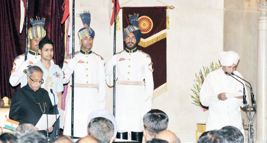 नई दिल्ली। राष्ट्रपति प्रणब मुखर्जी ने प्रधानमंत्री मनमोहन सिंह की सलाह पर चार व्यक्तियों को कैबिनेट मंत्री और चार को राज्यमंत्री नियुक्त किया है। इन्हें सोमवार को सायं राष्ट्रपति भवन में पद और गोपनीयता की शपथ दिलाई गई। शपथ लेने वाले कैबिनेट मंत्री हैं-सीस राम ओला, ऑस्कर फर्नांडीस, डॉ गिरिजा व्यास और डॉ कावुरू संबासिवा राव। राज्य मंत्री हैं-माणिकराव एच गावित, श्रीमती संतोष चौधरी, डॉ ईएमएस नचियप्पन और जेसूदासू सीलम।