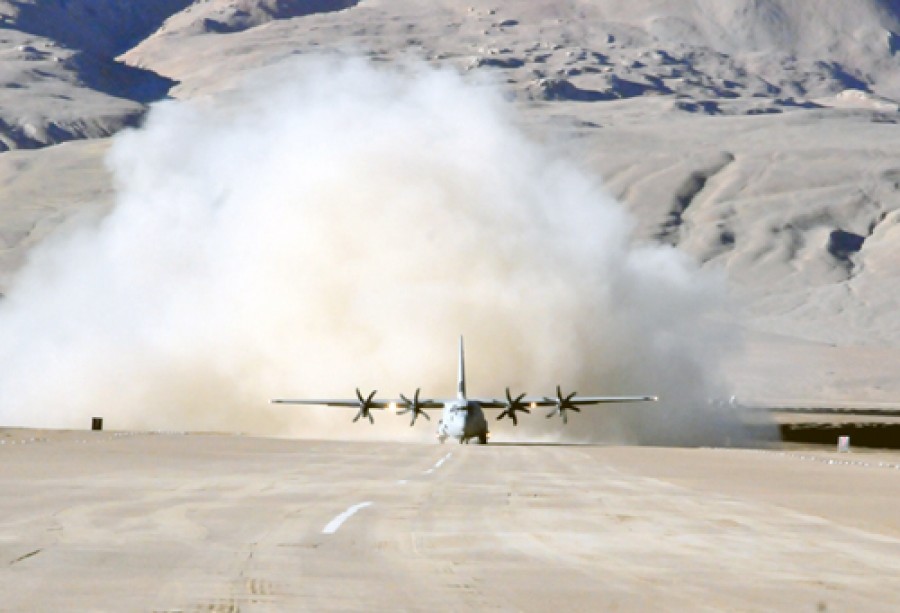 नई दिल्ली। एक महत्वपूर्ण क्षमता प्रदर्शन के रूप में भारतीय वायु सेना (आईएएफ) के सुपर हरक्यूलिस एयरक्राफ्ट सी 130जे-30 ने दुनिया की सबसे उंची हवाई पट्टी दौलत बेग ओल्डी (डीबीओ) पर कल सुबह 6.54 बजे लैंडिग की। कमांडिंग अधिकारी ग्रुप कैप्टन तेजबीर सिंह और 'वील्ड वाइपर' के साथियों ने वायु सेना मुख्यालय के वरिष्ठ अधिकारियों के साथ अपने गृह हवाई अड्डे हिंडन से उड़ने के बाद 16614 फीट की उंचाई पर स्थित अक्साई चीन की हवाईपट्टी डीबीओ को छुआ।