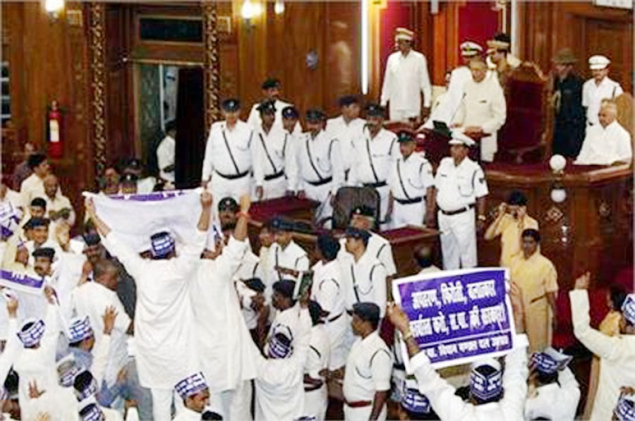 लखनऊ। उत्तर प्रदेश विधानसभा सत्र में राज्यपाल का अभिभाषण यदि नहीं पढ़ने दिया जाए तो अंदाजा लगाइए कि विधानसभा में ऐसे अवसरों का किस हद तक पतन हो चुका है और विधानसभा सत्र से पहले सर्व दलीय बैठक बुलाने का क्या मतलब रह जाता है। राज्यपाल के अभिभाषण के ऐतिहासिक अवसर और कार्यवाही देखने के लिए बुद्धिजीवी, विद्यार्थी, जन समस्याओं जैसे विभिन्न विषयों पर शोध करने वाले, विशिष्ट महानुभाव दर्शक दीर्घाओं में आते हैं, मगर उन्हें अब वह वातावरण देखने को नहीं मिलता जो महर्षि पुरूषोत्तमदास टंडन जैसी अनेक राजनीतिक महान विभूतियों के समय स्थापित हुआ था। सोमवार को विधानसभा सत्र में राज्यपाल बीएल जोशी पूर्व की तरह अपना अभिभाषण ही नहीं पढ़ सके। मुख्य विपक्षी दल बहुजन समाज पार्टी ने राज्यपाल के विधानसभा मंडप के आसन पर पहुंचते ही, जो हंगामा बरपाया उससे विधानसभा की सारी व्यवस्थाएं तार-तार हो गईं। बैनर-कागज के गोले और मेजों पर चढ़कर विरोध करने के रूप में जो भी हुआ, वह विपक्ष का एक बड़ा ही गैर जिम्मेदाराना व्यवहार माना गया है।