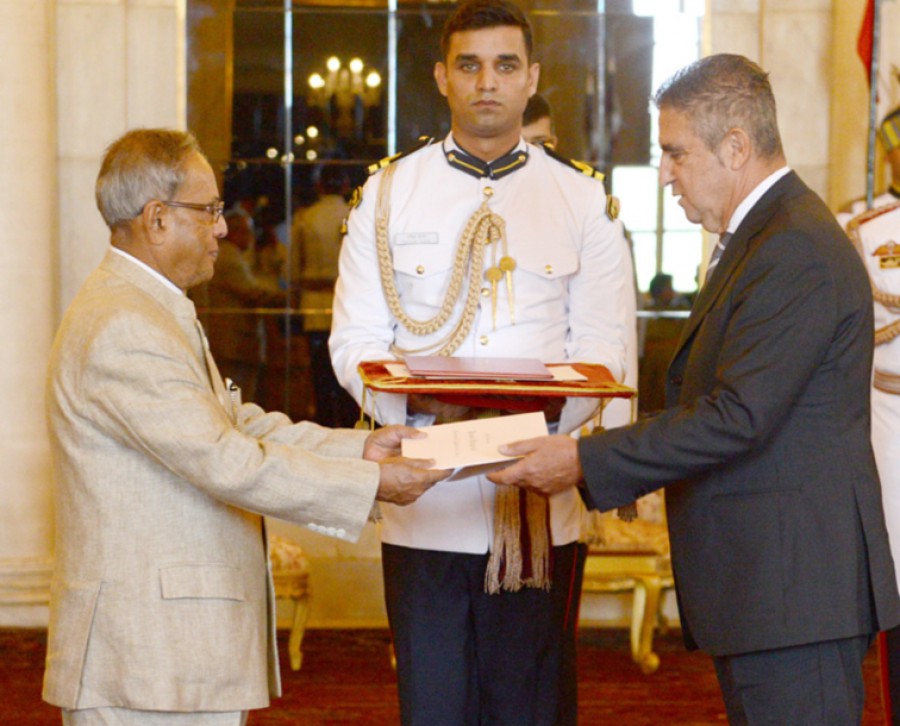 नई दिल्ली। राष्ट्रपति भवन में बुधवार को आयोजित एक समारोह में लिसोथो, ऑस्ट्रिया, सिंगापुर और सेन मैरीनो के राजदूतों ने अपने पद के परिचय पत्र राष्ट्रपति प्रणब मुखर्जी को सौंपे। परिचय पत्र प्रस्तुत करने वाले राजदूतों के नाम हैं-बोथाटा सिकोने, लिसोथो गणराज्य के उच्चायुक्त, बर्नहार्ड व्रावेट्ज, ऑस्ट्रिया गणराज्य के राजदूत, लिम थुवान कॉन, सिंगापुर गणराज्य के उच्चायुक्त, फ्रांसिस्को पोलीडोरी, सैन मैरीनो गणराज्य के राजदूत।