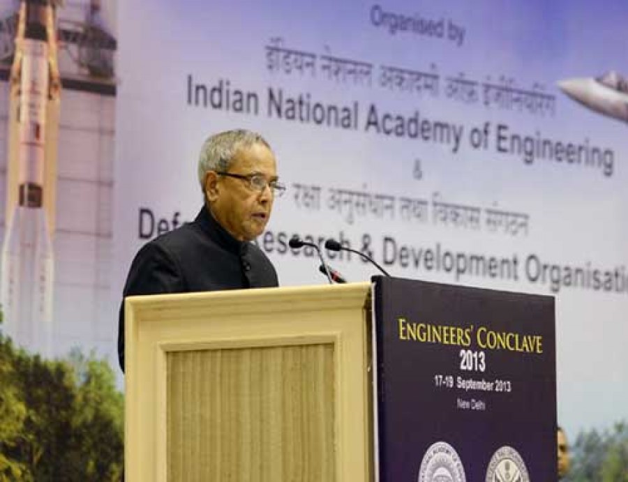 राष्ट्रपति ने विज्ञान भवन में पहले इंजीनियर्स कनक्लेव 2013 का उद्घाटन किया। इस अवसर पर राष्ट्रपति ने कहा कि यह बहुत ही उचित है कि इस कनक्लेव का आयोजन इंडियन नेशनल इंजीनियरिंग एकेडेमी और रक्षा अनुसंधान एवं विकास संगठन (डीआरडीओ) ने मिलकर किया है। इस कनक्लेव के लिए दो थीम चुने गये हैं, जो एयरोस्पेस प्रणालियों के विनिर्माण और इंजीनियरिंग प्रणालियों की सहायता से सुंदरवन क्षेत्र के कायाकल्प से संबंधित हैं। ये दोनों विषय बहुत ही सामयिक हैं। उन्होंने कहा कि मुझे उम्मीद है कि इस सम्मेलन में जो विचार प्रस्तुत किये जाएंगे, उन्हें व्यावहारिक रुप दिया जाएगा। राष्ट्रपति ने कहा कि भारत की अनेक क्षेत्रों में उपलब्धियां हैं, जिनके कारण भारत 21वीं शताब्दी में एक अग्रणी देश के रुप में उभर कर सामने आयेगा। हमारे वैज्ञानिकों और इंजीनियरों में नवीकरण की जो योग्यता है, वह इस लक्ष्य की प्राप्ति में महत्वपूर्ण भूमिका निभायेगी। उन्होंने कहा कि हर इंजीनियरी गतिविधि का केंद्र लोग होने चाहिएं और उपभोक्ताओं और छोटे कारोबारियों को इनका लाभ पहुंचना चाहिए।