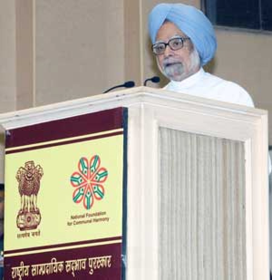 नई दिल्ली। प्रधानमंत्री मनमोहन सिंह ने नई दिल्ली में आयोजित राष्ट्रीय सांप्रदायिक सद्भावना पुरस्कार समारोह में कहा है कि आज देश के कुछ भागों में सांप्रदायिक तनाव बढ़ गया है, यह बहुत दुख की बात है, इसलिए सभी का सामूहिक दायित्व है कि हम अपने समाज में सद्भावना और मैत्री को बढ़ावा दें, हमारा देश विविधताओं से भरा है, यह वही देश है, जिसमें हम अपने स्वार्थ को भुलाकर सहिष्णुता और दूसरों का सम्मान करने की परंपरा पर चलने पर गर्व करते हैं। उन्होंने कहा कि भारत की भूमि पर सदियों से विभिन्न धर्म एक साथ फले-फूले हैं और समृद्ध हुए हैं, हमारे यहां लोगों का धर्मनिरपेक्ष नज़रिया है और मेरा मानना है कि केवल थोड़े से लोग हम लोगों के बीच फूट पैदा करने के लिए जिम्मेदार हैं।