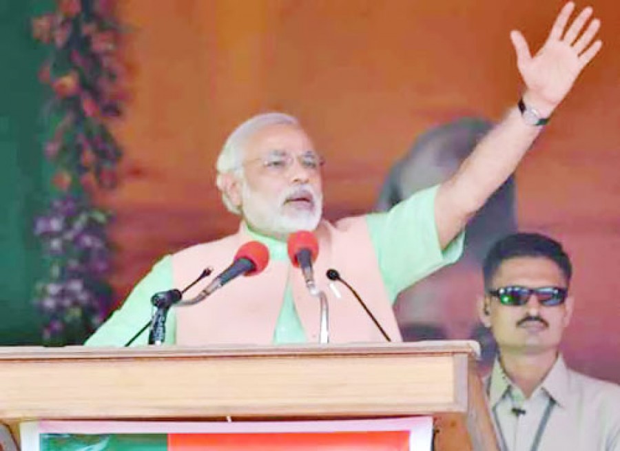 नरेंद्र मोदी ने मुजफ्फरनगर में हुए सांप्रदायिक दंगों के मामले में गिरफ्तार भाजपा विधायकों संगीत सोम तथा सुरेश राणा पर राष्ट्रीय सुरक्षा कानून की तामील किए जाने पर सवाल उठाया कि क्या कारण था कि उत्तर प्रदेश सरकार ने भाजपा को बदनाम करने के लिए हमारे दो विधायकों को जेल में बंद कर दिया और जब न्यायपालिका ने उनको छोड़ दिया तो दूसरे कानून लगाकर दोबारा जेल भेज दिया? मोदी ने देश के लोकतंत्र के साथ खिलवाड़ किए जाने का आरोप लगाते हुए कहा कि हैरानी की बात है कि केंद्रीय सूचना प्रसारण मंत्रालय ने टीवी मीडिया को एक एडवाइजरी जारी की है कि चैनलों ने गुजरात के मुख्यमंत्री नरेंद्र मोदी को भी प्रधानमंत्री की तरह लालकिले पर भाषण करते हुए क्यों दिखाया, उस पर रोक लगनी चाहिए। उन्होंने कहा कि पिछले 15 अगस्त की घटना पर यह एडवाइजरी हफ्ते भर पहले ही दी गई है। इसका कारण भी उन्होंने बताया। कांग्रेस बौखला गई है। नरेंद्र मोदी ने कहा कि सवाल मोदी या भाजपा की रैली का नहीं है, बल्कि लोकतंत्र की रक्षा का है, यह हमारा गला घोटने का काम है, हम टीवी की स्क्रीन पर भले ना दिखाई दें, लेकिन अवाम के दिलों में जगह बना चुके हैं।