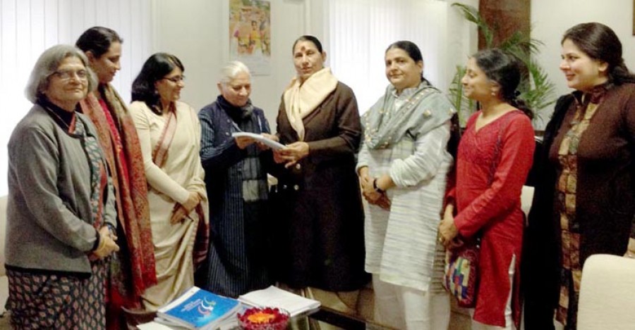 नई दिल्ली। महिलाओं की स्थिति पर बनाई गई उच्च स्तरीय समिति ने महिला एवं बाल विकास मंत्री कृष्णा तीरथ को अपनी प्रारंभिक रिपोर्ट की पहली प्रति सौंप दी है। आज दिल्ली में अपनी प्रारंभिक रिपोर्ट में उच्च स्तरीय समिति ने महिलाओं के विरूद्ध हिंसा, घटते लिंग अनुपात और महिलाओं के आर्थिक अशक्तिकरण के तीन मुख्य सामयिक मुद्दे बताये जिन पर देश को तत्काल ध्यान देने और सरकार को तुरंत कदम उठाने की आवश्यकता है। इसमें प्रमुख सुझाव यह है कि सभी महत्वपूर्ण संस्थाओं में महिलाओं के लिए 50 प्रतिशत आरक्षण का विधान लागू किया जाना चाहिए।