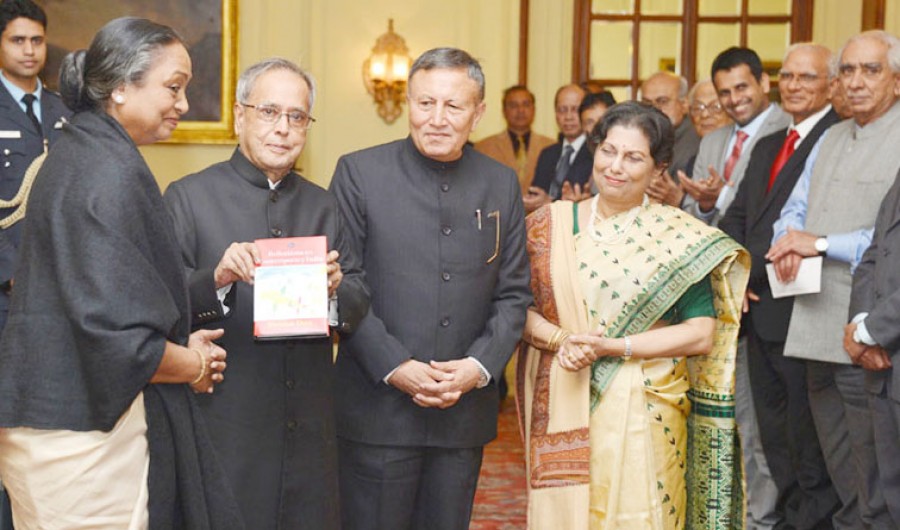 नई दिल्ली। राष्ट्रपति प्रणब मुखर्जी को कल राष्ट्रपति भवन में आयोजित एक समारोह में छत्तीसगढ़ के राज्यपाल शेखर दत्त की पुस्तक रिफ्लेक्शंस ऑन कंटेंपरेरी इंडिया की पहली प्रति समर्पित की गई। राष्ट्रपति को यह पुस्तक लोकसभा की अध्यक्ष मीरा कुमार ने भेंट की। मीरा कुमार ने इस पुस्तक को औपचारिक रूप से लोकार्पित किया है।