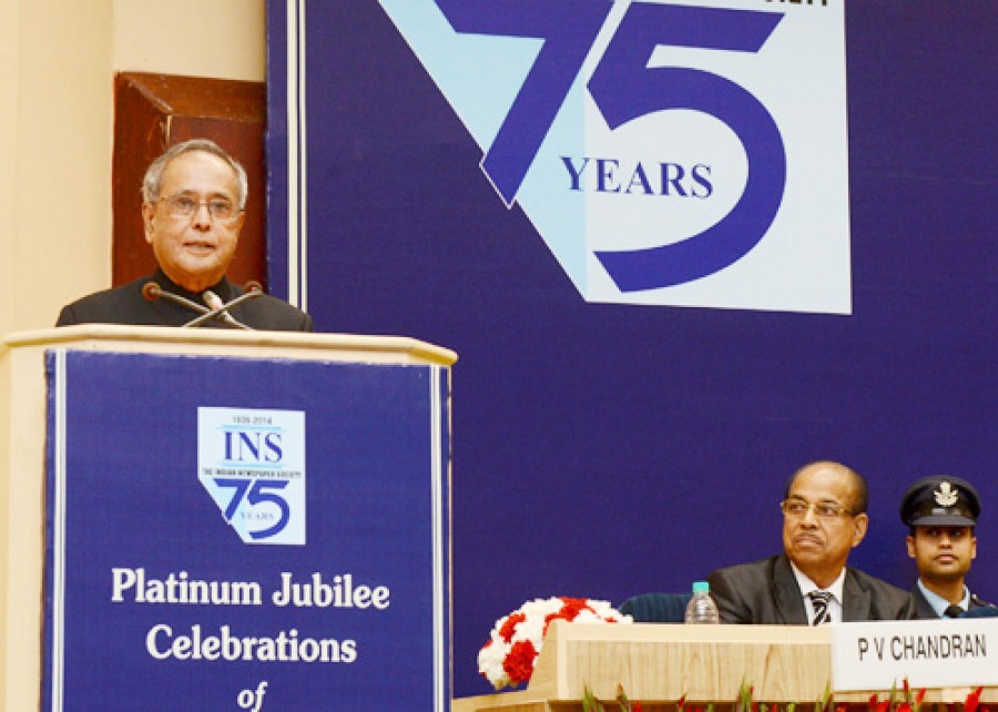 नई दिल्ली। भारत के राष्ट्रपति प्रणब मुखर्जी ने इंडियन न्यूज़ पेपर सोसाइटी (आईएनएस) के हीरक जयंती समारोह में कहा है कि भारत का विशाल, वैविध्यपूर्ण तथा गतिशील मीडिया एक राष्ट्रीय संपदा है। इसी के साथ राष्ट्रपति ने पेड न्यूज़ और अन्य बाजारी नीति के जरिए राजस्व बढ़ाने की नीति को दुखद बताया और मीडिया को इनसे ऊपर उठकर सार्वजनिक जीवन में शुद्धता के लिए अहम भूमिका निभाने का आह्वान किया। राष्ट्रपति ने कहा कि मीडिया कुल मिलाकर न केवल लोगों को जानकारी से अवगत कराता है, अपितु नीति निर्माण और इसके कार्यान्वयन में विचार तथा विकल्प रखने का अत्यंत महत्वपूर्ण कार्य भी निष्पादित करता है। उन्होंने कहा कि हीरक जयंती समारोह आईएनएस के सदस्यों के लिए एक महत्वपूर्ण उपलब्धि है, क्योंकि यह सभी भारतीयों के लिए है, इंडियन न्यूज़ पेपर सोसाइटी ने वर्षों से समय की चुनौतियों का सामना किया है और इसने भारत के अत्यंत प्रभावशाली समाचार पत्रों और आवधिक पत्रिकाओं का प्रतिनिधित्व भी किया है।