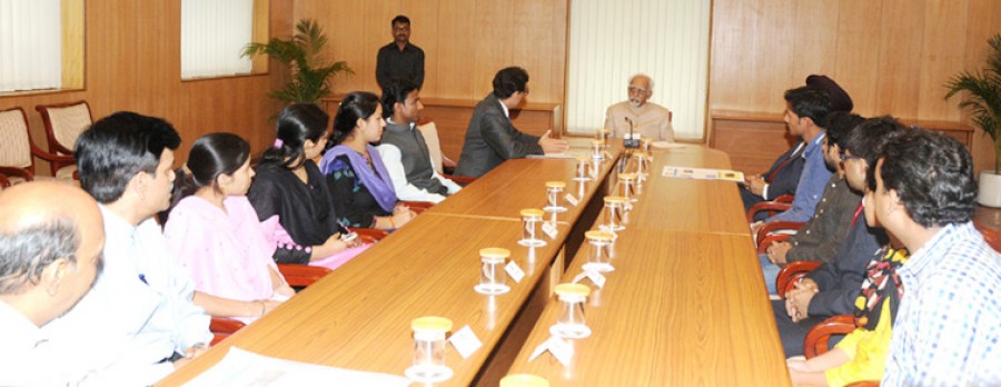उप-राष्ट्रपति ने छात्रों से बातचीत के दौरान उनके पाठ्यक्रम और भविष्य की योजनाओं के बारे में भी बातचीत की। उन्होंने कहा कि उर्दू अखबारों की संख्या बढ़ रही है, लेकिन चिंता की बात यह है कि उर्दू अखबारों के पाठकों की संख्या कम होती जा रही है। उन्होंने छात्रों से कहा कि वे आम लोगों में उर्दू अखबारों की लोकप्रियता को बढ़ाने के तरीके तलाश करें। छात्रों ने उप-राष्ट्रपति से उर्दू भाषा के संसाधनों में कमी और उर्दू सॉफ्टवेयर आदि की गुणवत्ता अच्छी न होने जैसी उर्दू पत्रकारिता से जुड़ी समस्याओं का भी जिक्र किया। उप-राष्ट्रपति ने उर्दू पत्रकारिता में सुधार के लिए इन समस्याओं का हल निकालने में छात्रों को पूरे सहयोग का आश्वासन दिया।