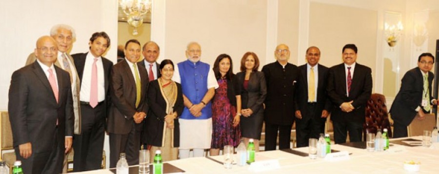 न्यूयार्क। भारतीय मूल के दस प्रतिष्ठित अमेरीकियों के समूह ने शनिवार को भारत के प्रधानमंत्री नरेंद्र मोदी से मुलाकात की। प्रधानमंत्री ने उनसे भारत के विकास के बारे में अपने विचार साझा करने का अनुरोध किया। भारतीय मूल के अमरीकियों ने कहा कि निर्णय लेने में स्पष्टता, कारोबार में सुगमता, कौशल विकास और विश्वविद्यालय-उद्योग के बीच सशक्त संपर्क कुछ ऐसे महत्वपूर्ण क्षेत्र हैं, जिन पर ध्यान देने की जरूरत है। उन्होंने डिजिटल इंडिया और स्वच्छ भारत अभियान जैसी पहलों की सराहना की।