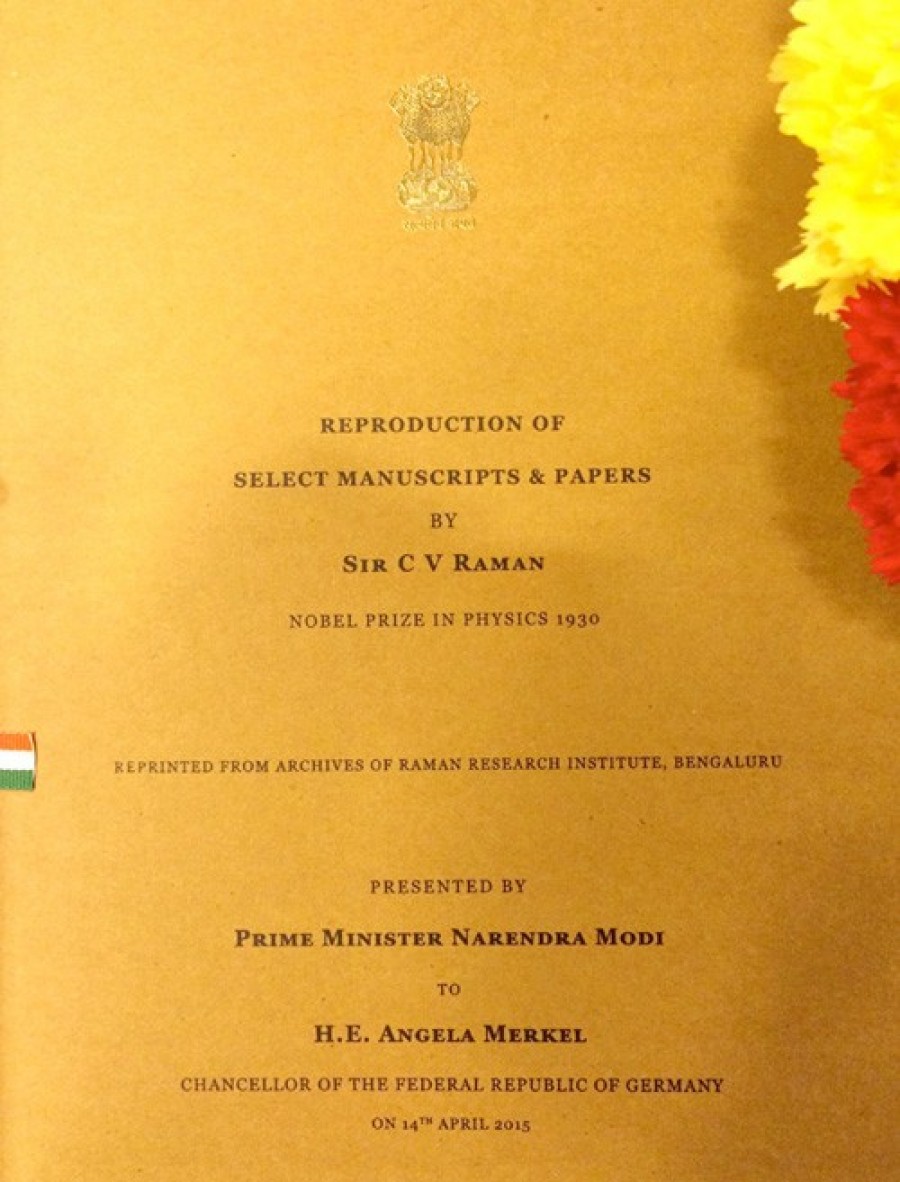 बर्लिन। प्रधानमंत्री नरेंद्र मोदी ने जर्मनी की चांसलर एंजिला मर्केल को सर सीवी रमन की कुछ पांडुलिपियों की पुनःप्रस्तुति और पेपर तोहफे में दिए, जिन्हें 1930 में भौतिकी में नोबल पुरस्कार से सम्मानित किया गया था। सर सीवी रमन को प्रकाश के उत्कीर्णन के लिए यह सम्मान मिला था। उन्होंने अपनी ज्यादातर पढ़ाई और प्रयोग भी भारत में ही किए तथा अधिकतर जीवन भारत में ही बिताया, लेकिन जर्मनी के साथ उनके बड़े आत्मीय संबंध थे।