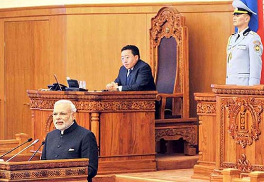 प्रधानमंत्री नरेंद्र मोदी ने कहा कि करीब दो हजार वर्ष पहले भारत से बौद्ध भिक्षुओं ने मुश्किल क्षेत्रों को पार किया और भगवान बुद्ध का संदेश देने के लिए इस महान भूमि तक पहुंचने के वास्ते लंबी दूरी तय की, यहां से भी बहुत से लोग आध्यात्मिक ज्ञान लेने के लिए भारत गए। उन्होंने कहा कि सदियों पहले जब हमारे पास आवागमन के साधन सीमित थे, तब महान मंगोलों ने एशिया और यूरोप को एक किया, उनकी कहानी साहस, हिम्मत और निर्भीकता की कहानी है, जो दुनिया में आज भी सबको प्रेरित करती है, मानव इतिहास पर उनका बहुत प्रभाव पड़ा है। उन्होंने राष्ट्रपति मंगोलिया, चेयरमैन ग्रेट हॉल ऑफ मंगोलिया, संसद सदस्यों, डिप्लोमैटिक कॉर्प की ओर मुखातिब होते हुए कहा कि मुझे महान लोगों के देश मंगोलिया आकर बहुत खुशी है, आपका देश हमें याद कराता है कि दुनिया कितनी खूबसूरत है। प्रधानमंत्री ने कहा कि इतिहास में हमारी अपनी संस्कृतियां, साहित्य और कला एक दूसरे से जुड़ती रहीं और आज भी भारत की विविधता और संस्कृति को समृद्ध बना रही है, आज भारतीय और मंगोल दुनिया को बता रहे हैं कि दिल और दिमाग कैसे दूरियों की बाधाएं पार पाने की ताकत देते हैं।