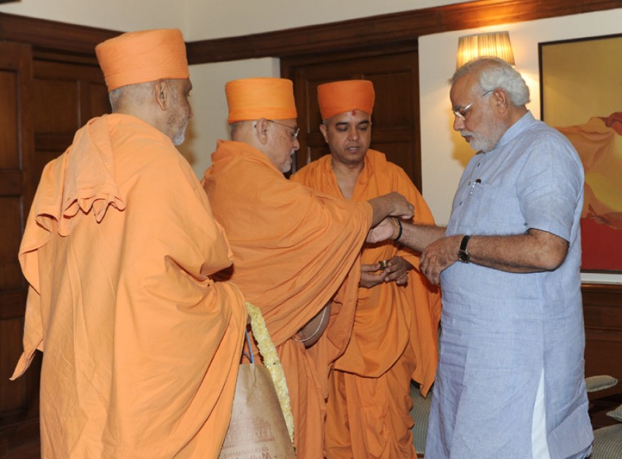 नई दिल्ली। बोचासनवासी अक्षर पुरुषोत्तम संस्था के संतों के एक उच्चस्तरीय प्रतिनिधिमंडल ने प्रधानमंत्री नरेंद्र मोदी से मुलाकात की और उन्हें करुणा और शक्ति के साथ राष्ट्र सेवा करने का आशीर्वाद दिया। प्रतिनिधिमंडल ने प्रधानमंत्री को संस्था के प्रमुख स्वामी महाराज की शुभकामनाएं और आशीष दिया। प्रतिनिधिमंडल में ब्रह्मविहारी स्वामी, साधु ईश्वरचरण दास, साधु आत्मास्वरूप दास, साधु गनानमुनी दास और यशवंत जेठवास शामिल थे।