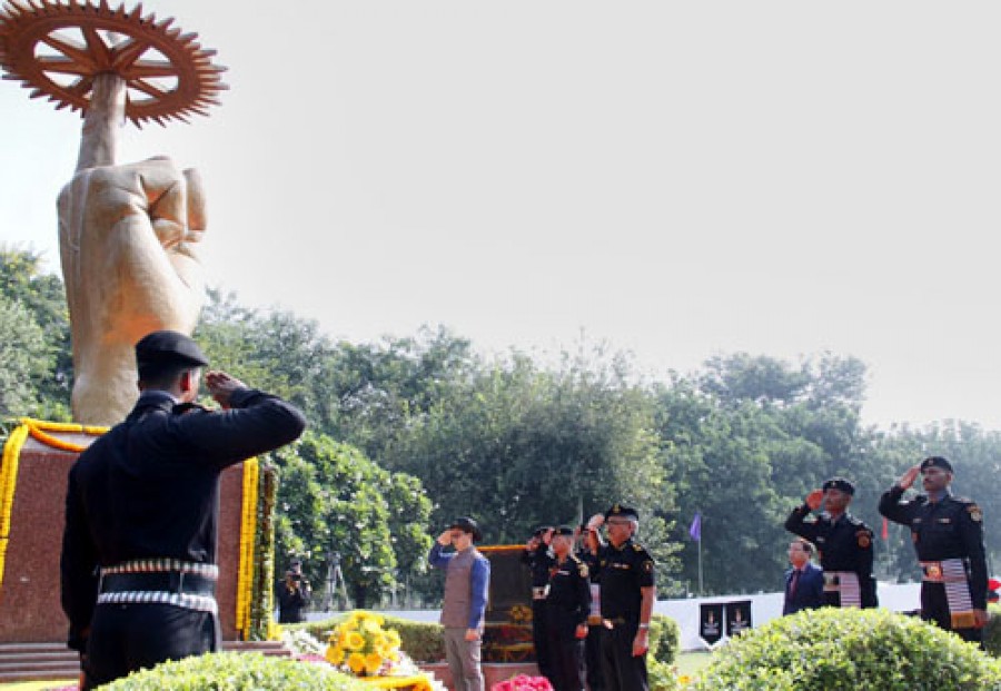 गुड़गांव। केंद्रीय गृह राज्यमंत्री किरण रिजिजू ने गुड़गांव के मानेसर में राष्ट्रीय सुरक्षा गार्ड (एनएसजी) के 31वें संस्थापना दिवस पर परेड की सलामी ली। उन्होंने एनएसजी के अधिकारियों एवं जवानों को उनके सिद्धांत 'सर्वत्र सर्वोत्तम सुरक्षा' पर खरे उतरने पर बधाई दी और जवानों को भरोसा दिलाया कि सरकार उनकी अहम जरूरतों को पूरा करने के लिए प्रतिबद्ध है। उन्होंने सराहनीय सेवा, सर्वश्रेष्ठ कमांडो, निशानेबाज़ और प्रशिक्षक के पुरस्कार से विजेताओं तथा एनएसजी शहीदों के परिवारों को राष्ट्रपति पुलिस मेडल से सम्मानित किया। उन्होंने 'द ब्लैक कैट जर्नल' के विशेष अंक-2015 का भी अनावरण किया।