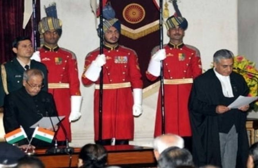 नई दिल्ली। राष्ट्रपति प्रणब मुखर्जी ने आज 3 दिसंबर 2015 को राष्ट्रपति भवन में एक शपथ-ग्रहण समारोह में न्यायमूर्ति तीरथ सिंह ठाकुर को भारत के सर्वोच्च न्यायालय के 43वें प्रधान न्यायाधीश के रूप में उन्हें पद एवं गोपनीयता की शपथ दिलाई। इस अवसर पर प्रधानमंत्री नरेंद्र मोदी, उपराष्ट्रपति मोहम्मद हामिद अंसारी, सुप्रीम कोर्ट के वर्तमान एवं पूर्व न्यायाधीश, देश के सॉलिसिटर जनरल मुकुल रोहतगी सहित केंद्रीय मंत्रिमंडल के सदस्य, कानूनविद् और गणमान्य नागरिक उपस्थित थे।