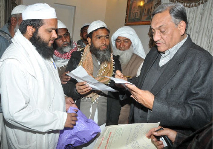 देहरादून। उत्तराखंड के मुख्यमंत्री विजय बहुगुणा से शनिवार को विभिन्न संगठनों के प्रतिनिधियों ने मुलाकात की। हाजी दिलशाद कुरैशी के नेतृत्व में देहरादून जिले के मुस्लिम समाज के व्यक्तियों व उलेमाओं ने मुख्यमंत्री से भेंट कर अपनी माँगे प्रस्तुत कीं। उन्होंने पंजीकृत मदरसों में मध्याह्न भोजन दिए जाने, मदरसा बोर्ड में मदरसों के प्रतिनिधि को मदरसों की सलाह से नियुक्त किए जाने सहित विभिन्न माँगें रखीं। मुख्यमंत्री ने सचिव अल्पसंख्यक कल्याण को समुचित कार्रवाई किए जाने के लिए निर्देशित किया। उन्होंने कहा कि अल्पसंख्यकों की समस्याओं का निस्तारण प्राथमिकता से करने के लिए अलग से अल्पसंख्यक कल्याण विभाग बनाया गया है, शीघ्र ही उर्दू अकादमी भी स्थापित की जाएगी।