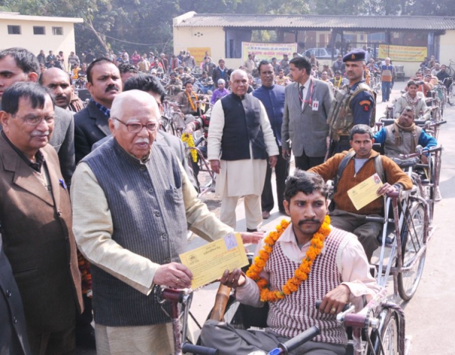 लखनऊ। उत्तर प्रदेश के राज्यपाल राम नाईक ने नेताजी सुभाष चंद्र बोस के 119वें जन्म दिवस पर गांधी भवन में कल्याणं करोति संस्था के कार्यक्रम में दिव्यांगों को सिलाई मशीन, ट्राई साईकिल, बैसाखी और सहायक उपकरण वितरित किए। कार्यक्रम में स्वामी रामभद्राचार्य, डॉ वीवी प्रताप, महंत अंजनीदास सहित बड़ी संख्या में दिव्यांगजन उपस्थित थे। राज्यपाल ने अपने सम्बोधन में समाज से कहा कि वह दिव्यांगों को विज्ञान का लाभ देने का काम करे, विज्ञान की प्रगति से दिव्यांगजनों को समाज की मुख्यधारा से जोड़ा जा सकता है। उन्होंने कहा कि नेताजी की जयंती पर यह संकल्प करें कि जिनको भगवान ने सब कुछ दिया है वे ऐसे लोगों की मदद करें जिन्हें जरूरत है। राज्यपाल ने कहा कि महात्मा गांधी, राममनोहर लोहिया, जयप्रकाश नारायण, पंडित दीनदयाल उपाध्याय जैसे महापुरुषों के विचार आज भी प्रासंगिक हैं।