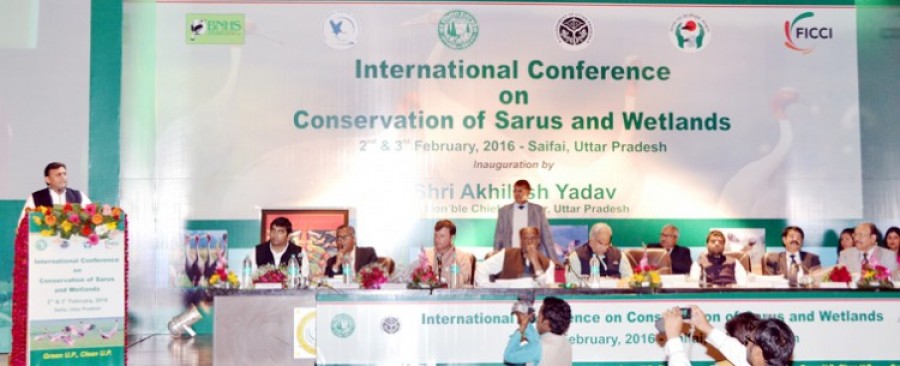 मुख्यमंत्री ने कहा कि दुनिया में सबसे अधिक सारस भारत में पाए जाते हैं और देश में पाए जाने वाले सारस पक्षी की कुल संख्या का 60 प्रतिशत क्षेत्र उत्तर प्रदेश में है और उत्तर प्रदेश में भी इटावा का इलाका इनका प्रमुख परिवास है। मुख्यमंत्री ने संदर्भ व्यक्त किया कि सारस जीवनभर के लिए जोड़ा बनाते हैं। अखिलेश यादव ने कहा कि शेखा झील को वर्ल्ड झील बनाए जाने के लिए चयनित किया गया है, जिसे सौंदर्यीकरण के साथ विकसित किया जाएगा। उन्होंने कहा कि अधिकाधिक उत्पादन के लालच में ज्यादा रासायनिक उर्वरकों का प्रयोग करने से पर्यावरण प्रभावित हो रहा है, जिसका असर प्राणि जगत पर भी पड़ रहा है। उन्होंने कहा कि वेटलैंड्स संरक्षण कार्य में ग्राम प्रधान और किसान महत्वपूर्ण भूमिका निभा सकते हैं। मुख्यमंत्री ने कहा कि संगोष्ठी में आए देश-विदेश के संरक्षण विशेषज्ञों एवं वैज्ञानिकों के सुझावों को लागू किया जाएगा।