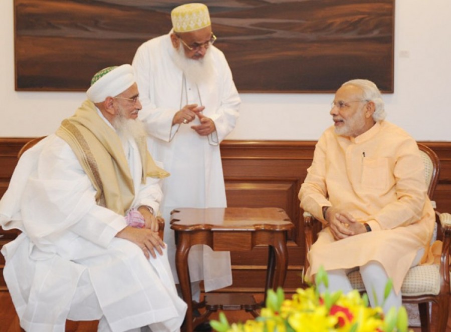 नई दिल्ली। दाउदी बोहरा समुदाय के धार्मिक प्रमुख सैदना मुफद्दल सैफुद्दीन ने नई दिल्ली में प्रधानमंत्री नरेंद्र मोदी से मुलाकात की। उनके साथ नौ सदस्यीय प्रतिनिधिमंडल भी था। प्रधानमंत्री ने दाउदी बोहरा समुदाय के सामाजिक सुधार संबंधी प्रयासों की तारीफ करते हुए कहा कि केंद्र सरकार ने उनके लिए कई तरह की विकास पहल करते हुए उन्हें भरपूर समर्थन दिया है। नरेंद्र मोदी ने मुंबई के भिंडी बाजार क्षेत्र को स्मार्ट सिटी के रूप में विकसित करने के लिए दाउदी बोहरा समुदाय की प्रगति की सराहना की। प्रधानमंत्री नरेंद्र मोदी ने गंगा नदी के तटों पर बसे गांवों में शौचालयों के विकास के लिए दाउदी बोहरा समुदाय से आगे आने का आग्रह भी किया।