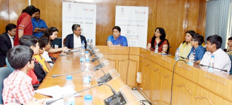 नई दिल्ली। केंद्रीय मानव संसाधन विकास मंत्री स्मृति जुबिन ईरानी ने नई दिल्ली में गूगल इंडिया की कोड टू लर्न स्पर्धा के विजेताओं को सम्मानित करते हुए सुझाव दिया है कि गूगल इंडिया को अगले वर्ष से शुरू होने वाले चरण में स्पर्धा में भाग लेने के लिए सरकारी स्कूल के विद्यार्थियों की पहचान करनी चाहिए। उन्होंने आशा व्यक्त की कि अगले चरण में प्रतियोगिता के विजेताओं में लड़कियों की संख्या अधिक होगी। स्मृति जुबिन ईरानी ने कहा कि राष्ट्रीय आविष्कार अभियान के अंतर्गत यह कार्यक्रम चलाया गया है और यह मानव संसाधन विकास मंत्रालय का अग्रणी कार्यक्रम है। उन्होंने कहा कि इस तरह के कार्यक्रम से मेधावी विद्यार्थियों के साथ सीधे रूप से जुड़ने में मदद मिलती है और यह दिखता है कि बच्चे अपने समुदाय के सदस्यों की चिंताओं के अनुरूप हैं।