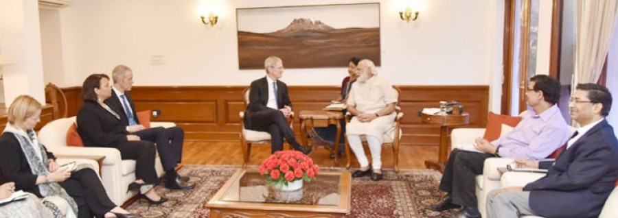 एप्पल कंपनी के मुख्य कार्यकारी अधिकारी टिम कुक ने भारत के लिए एप्पल कंपनी की भविष्य की योजनाओं को साझा किया। उन्होंने भारत में विनिर्माण एवं खुदरा व्यवसाय की संभावनाओं के बारे में बातचीत की। उन्होंने भारत की युवा प्रतिभाओं की सराहना की और कहा कि युवाओं के पास उल्लेखनीय कौशल है, जिनका एप्पल दोहन करना चाहेगी। उन्होंने देश में उपस्थित ‘ऐप-डेवलपमेंट’ की बेशुमार संभावना का जिक्र किया, मैप डेवलपमेंट सेंटर के बारे में भी प्रधानमंत्री को विस्तार से बताया, जिसकी एप्पल इं. इैदराबाद में स्थापना कर रही है। उन्होंने ‘व्यवसाय करने की सरलता’ और नवीकरणीय ऊर्जा के लिए नरेंद्र मोदी की पहलों की सराहना की। उन्होंने कहा कि एप्पल 93 प्रतिशत नवीकरणीय ऊर्जा पर निर्भर है। उन्होंने एप्पल की समस्त आपूर्ति श्रृंखला को नवीरकणीय ऊर्जा पर संचालित करने की योजनाओं की चर्चा की।