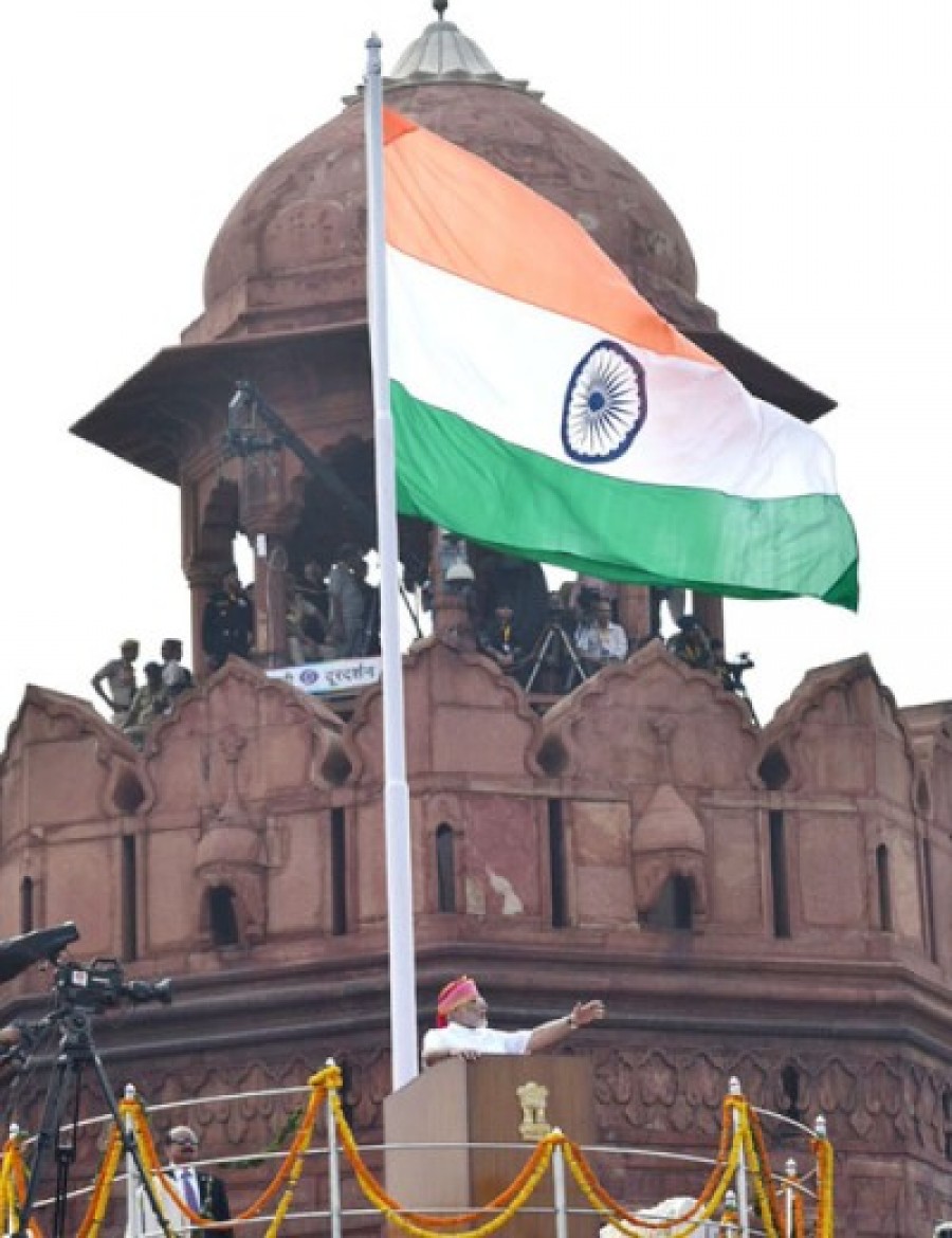 नई दिल्ली। प्रधानमंत्री नरेंद्र मोदी ने आज लाल किले की प्राचीर से देश के 70वें स्वतंत्रता दिवस पर देश-दुनिया में बसे भारतवासियों को संबोधित करते हुए कहा है कि आजादी का यह 70वां वर्ष एक नया संकल्प, नई उमंग, नई ऊर्जा, राष्ट्र को नई ऊंचाइयों पर ले जाने का संकल्प पर्व है, आज हम जो आजादी की सांस ले रहे हैं, उसके पीछे लक्ष्याव्धि महापुरुषों का बलिदान है, त्याग और तपस्या की गाथा है। उन्होंने कहा कि वेद से विवेकानंद तक, उपनिषद् से उपग्रह तक, सुदर्शन चक्रधारी मोहन से ले करके चरखाधारी मोहन तक, महाभारत के भीम से ले करके भीमराव तक, एक भारत की लंबे इतिहास की यात्रा है, विरासत है, भारत की उम्र 70 साल नहीं है, यह यात्रा 70 साल की है। प्रधानमंत्री ने आज पाकिस्तान को उसके आतंकवाद का मुंहतोड़ जवाब देते हुए उसके अत्याचारों से त्रस्त अशांत राज्य बलूचिस्तान का जिक्र करके उसे भी एक प्रकार से भारत के एजेंडे में शामिल कर लिया। यह भारतीय विदेश नीति का दूरगामी संवेदनशील पासा माना जा रहा है, जो पाकिस्तान के लिए बंग्लादेश की तरह एक नई मुसीबत के रूप में सामने होगा।