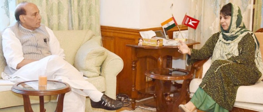 श्रीनगर। गृहमंत्री राजनाथ सिंह ने अपने श्रीनगर दौरे पर विभिन्न राजनीतिक दलों के साथ कई मुलाकातें की हैं। राजनाथ सिंह ने कश्मीर घाटी में सुरक्षा की स्थिति का जायजा लेने के लिए सुरक्षा एजेंसियों एवं राज्य सरकार के वरिष्ठ अधिकारियों के साथ एक बैठक भी की। गृहमंत्री राजनाथ सिंह ने जम्मू-कश्मीर की मुख्यमंत्री महबूबा मुफ्ती से भी मुलाकात की और राज्य में सुरक्षा संबंधी प्रबंध एवं हालात पर चर्चा की। जम्मू-कश्मीर की मुख्यमंत्री महबूबा मुफ्ती ने कहा कि राज्य की बड़ी आबादी शांति के पक्ष में हैं। उन्होंने साफ कहा कि बच्चों को उकसाया जा रहा है। उन्होंने कहा कि केवल पांच प्रतिशत लोग घाटी में इस तबाही के लिए जिम्मेदार हैं। राजनाथ सिंह के साथ संयुक्त वार्ता में उन्होंने कहा कि वह कश्मीर को जहन्नुम नहीं बनने देंगी।