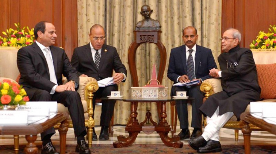 प्रणब मुखर्जी ने कहा कि हम इस बात से भी अवगत हैं कि हमारे सामने खड़ी चुनौतियां पहले से भी अधिक जटिल हो गई हैं, हमारे संबंधित क्षेत्रों पर उग्रवाद की छाया मंडरा रही है, जिसका सामना एकजुटता से और मजबूती से किया जाना चाहिए। राष्ट्रपति ने कहा कि राष्ट्रपति अब्देल फतह अल सीसी की यात्रा ऐसे समय में हो रही है, जब भारत और मिस्र दोनों की ही इच्छा अपने संबंधों में नई गति को समावेशित करने और आपसी सहयोग को सघन बनाने की है। उन्होंने कहा कि दोनों देशों के बीच आर्थिक साझेदारी निवेशों और बढ़े हुए व्यापार प्रवाहों तथा समान हितों के व्यापक क्षेत्रों में साझेदारी के जरिए और मजबूत हो रही है, भारत और मिस्र क्षेत्रीय एवं वैश्विक मुद्दों पर एक संयोजन साझा करते हैं। उन्होंने कहा कि आज सहयोग एवं साझेदारी के नए तरीके उभर रहे हैं और नए देश तेजी से इस चरण में प्रवेश कर रहे हैं, हालांकि हम अपने संबंधों की स्थिति को लेकर काफी संतुष्ट हैं, लेकिन हमें इसे और अधिक ऊंचाई तक ले जाने की दिशा में अपना प्रयत्न जारी रखना चाहिए।