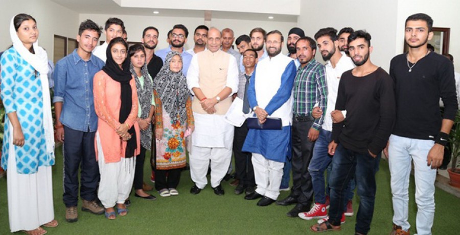 नई दिल्ली। जम्मू-कश्मीर के जम्मू, कश्मीर और लद्दाख का प्रतिनिधित्व करने वाले 30 से अधिक छात्रों के एक प्रतिनिधिमंडल ने गृहमंत्री राजनाथ सिंह और मानव संसाधन विकास मंत्री प्रकाश जावड़ेकर से मुलाकात की और राजस्थान में उनको छात्रवृत्ति की असुविधाओं पर चर्चा की। गृहमंत्री राजनाथ सिंह ने 3 सितंबर को मीडिया के माध्यम से जयपुर में कुछ संस्थानों में जम्मू-कश्मीर के छात्रों को छात्रवृत्ति नहीं मिलने से संबंधित समस्याओं के बारे में पता चलने के बाद स्वयं पहल करते हुए राजस्थान के शिक्षामंत्री से बात की थी और कुछ छात्रों के फोन नंबर प्राप्त किए थे। उनसे बात करके गृहमंत्री को पता चला कि छात्रों को प्रधानमंत्री विशेष छात्रवृत्ति योजना के तहत उनकी छात्रवृत्ति प्राप्त करने में कुछ कठिनाइयां हैं।