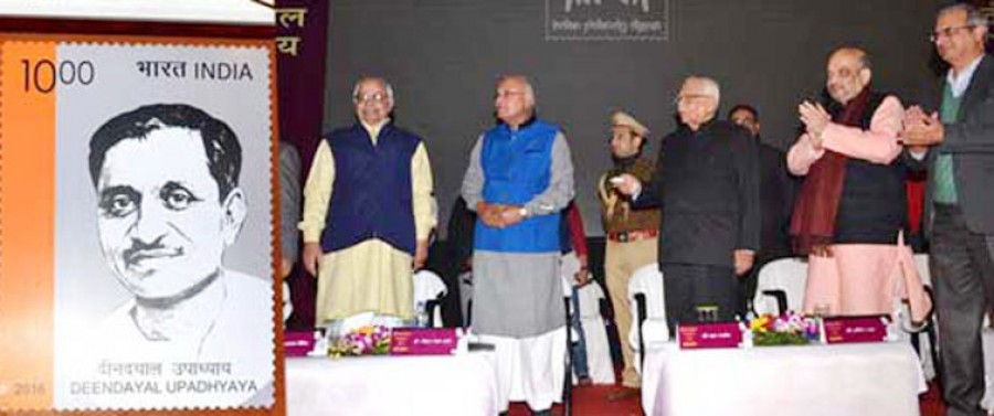 लखनऊ। एकात्म मानवदर्शन अनुसंधान एवं विकास प्रतिष्ठान के इंदिरा गांधी प्रतिष्ठान गोमतीनगर लखनऊ में हुए कार्यक्रम में ‘दीनदयाल उपाध्याय संपूर्ण वाङ्मय’ तथा पंडित दीनदयाल उपाध्याय पर एक डाक टिकट का लोकार्पण किया गया। कार्यक्रम की अध्यक्षता उत्तर प्रदेश के राज्यपाल राम नाईक ने की और भारतीय जनता पार्टी के राष्ट्रीय अध्यक्ष अमित शाह मुख्य अतिथि थे। कार्यक्रम में लखनऊ के महापौर डॉ दिनेश शर्मा, संपूर्ण वाङ्मय के संपादक डॉ महेशचंद्र शर्मा, संपादक मंडल के सदस्य अच्युतानंद मिश्र, राष्ट्रधर्म के संपादक ओमप्रकाश पांडेय, वरिष्ठ स्तंभकार एवं विधानपरिषद के सदस्य हृदय नारायण दीक्षित एवं विशिष्टजन उपस्थित थे। राज्यपाल राम नाईक ने 15 खंडों के दीनदयाल उपाध्याय संपूर्ण वाङ्मय के 13वें खंड की भूमिका लिखी है।