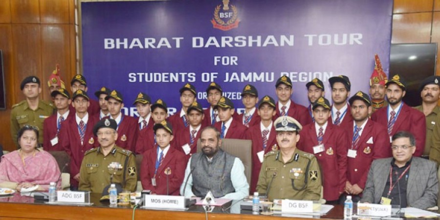 नई दिल्ली। जम्मू क्षेत्र के दूरदराज इलाकों से आए हुए 40 स्कूली बच्चों के एक समूह ने गृह राज्यमंत्री हंसराज गंगाराम अहीर से मुलाकात की। इस समूह में 20 लड़के और 20 लड़कियां शामिल हैं। ये बच्चे 12 से 18 वर्ष की आयु समूह के हैं, जो सीमा सुरक्षा बल के 15 जनवरी से 29 जनवरी तक आयोजित भारत दर्शन टूर के तहत आए हुए हैं। गृह राज्यमंत्री हंसराज गंगाराम अहीर ने इस मौके पर बच्चों को देश की एकता और अखंडता को मजबूत बनाने और घर वापस जाकर इस संदेश को प्रसारित करने के लिए प्रोत्साहित किया। सीमापार दुश्मनों के नापाक इरादों की ओर इशारा करते हुए उन्होंने ऐसे तत्वों के खिलाफ देश की रक्षा करने के लिए बच्चों को प्रेरित किया। उन्होंने आशा व्यक्त की कि इस यात्रा से बच्चों को काफी अनुभव प्राप्त होंगे।