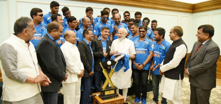 नई दिल्ली। प्रधानमंत्री नरेंद्र मोदी ने कहा है कि क्रिकेट को सुलभ और सबसे लोकप्रिय खेल बनाने के लिए ‘क्रिकेट फॉर द ब्लाइंड’ को विकसित किया गया है, यह खेल का एक अलग स्वरूप है। प्रधानमंत्री अपने आवास पर टी-20 विश्व कप जीतने वाली भारतीय दृष्टिबाधित क्रिकेट टीम से मुलाकात कर रहे थे। उन्होंने टीम के हर सदस्य को व्यक्तिगत रूप से और भारतीय टीम के कप्तान अजय कुमार रेड्डी को शानदार प्रदर्शन के लिए बधाई दी। प्रधानमंत्री ने टीम के प्रत्येक सदस्य के साथ अलग से फोटो खिंचवाई और बाद में एक समूह तस्वीर भी खिंचवाई। प्रधानमंत्री को दृष्टिबाधित विश्व कप में प्रयुक्त हुई एक क्रिकेट गेंद भेंट की गई, जो फेंके जाने पर आवाज़ उत्पन्न करती है। उन्होंने प्रत्येक सदस्य से उस गेंद पर हस्ताक्षर करने का आग्रह किया।