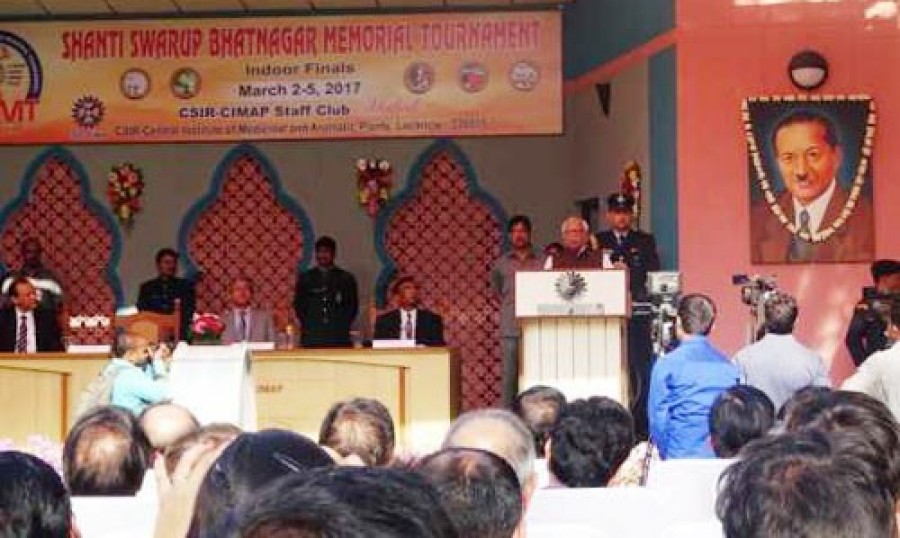 लखनऊ। उत्तर प्रदेश के राज्यपाल राम नाईक ने सीएसआईआर-सीमैप स्टाफ क्लब के पद्मश्री शांतिस्वरूप भटनागर मेमोरियल टूर्नामेंट के इंडोर फाइनल का उद्घाटन किया। टूर्नामेंट में चेन्नई, गोवा, लखनऊ, कोलकाता, नागपुर, नई दिल्ली सहित अन्य प्रदेशों के लगभग 190 खिलाड़ियों ने प्रतिभाग किया। सभी प्रतिभागी सीएसआईआर के कर्मचारी हैं। इस अवसर पर निदेशक सीमैप डॉ एके त्रिपाठी, निदेशक एनबीआरआई प्रोफेसर एस बारीक, निदेशक आईआईटीआर प्रोफेसर धवन और पदाधिकारी उपस्थित थे। राज्यपाल ने स्वर्गीय प्रोफेसर शांतिस्वरूप भटनागर को श्रद्धांजलि अर्पित करते हुए कहा कि उन्होंने देश में विज्ञान के मंदिर बनाने की नींव डाली, विख्यात विज्ञानी के रूप में उनकी सेवाएं देखते हुए उन्हें पद्म सम्मान दिया गया।
