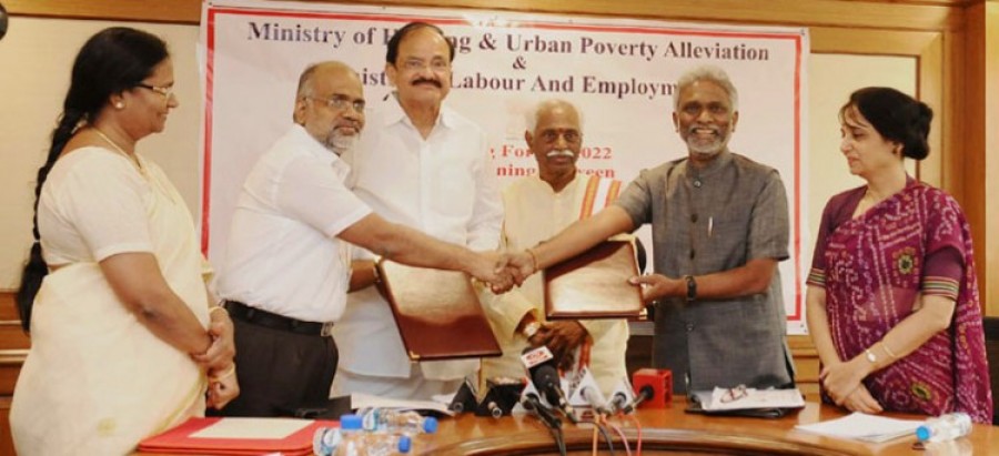 नई दिल्ली। केंद्रीय शहरी विकास, आवास और शहरी गरीबी उपशमन मंत्री एम वेंकैया नायडू और श्रम एवं रोज़गार मंत्रालय में स्वतंत्र प्रभार राज्यमंत्री बंडारू दत्तात्रेय की उपस्थित में 2022 तक सभी के लिए आवास मिशन पूरा करने के लिए केंद्रीय भविष्य निधि आयुक्त डॉ वीपी जोय और हुडको के अध्यक्ष एवं प्रबंध निदेशक डॉ एम रविकांत ने सहमति ज्ञापन पर हस्ताक्षर किए। ईपीएफओ ने वर्ष 2022 तक सभी के लिए आवास के प्रधानमंत्री नरेंद्र मोदी के विजन को हासिल करने की दिशा में एक कदम आगे बढ़ाते हुए 12 अप्रैल 2017 को बजट अधिसूचना संख्या जीएसआर 351 (ई) के माध्यम से ईपीएफ योजना 1952 में संशोधन किया। इस संशोधन में ईपीएफ सदस्यों को कुल एकत्रित भविष्य निधि राशि में से 90 प्रतिशत की निकासी की अनुमति देकर मकान लेने में सहायता प्रदान करने का प्रावधान है। इस संशोधन से आवास ऋण किश्त के भुगतान में सहजता का प्रावधान है।