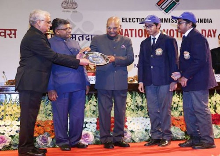 नई दिल्ली। भारत निर्वाचन आयोग की राष्ट्रीय निर्वाचन क्विज़ 2018 में रांची के दिल्ली पब्लिक स्कूल की टीम विजेता घोषित हुई, जिसको राष्ट्रीय मतदाता दिवस पर नई दिल्ली में एक समारोह में राष्ट्रपति रामनाथ कोविद ने डीपीएस रांची की टीम में शामिल मधुर जैन और आदित्य कुमार को एनईक्यू 2018 ट्रॉफी प्रदान की। ट्रॉफी के साथ प्रथम पुरस्कार के रूपमें एक लाख रुपये नकद भी दिया गया। राष्ट्रीय निर्वाचन क्विज़ 2018 में 38000 स्कूलों से 13.36 लाख छात्रों ने हिस्सा लिया था, यह प्रतियोगिता ढाई महीने से अधिक चली।