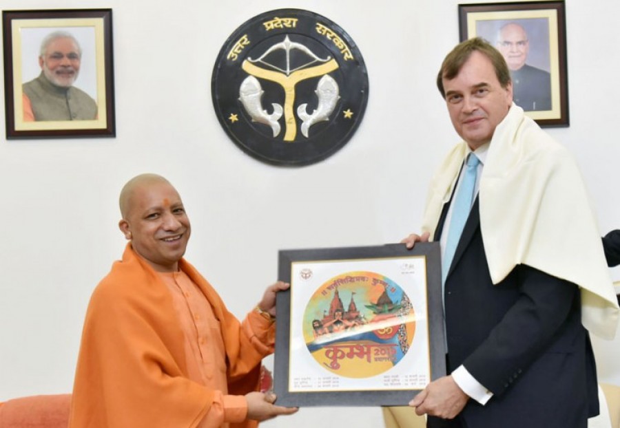 लखनऊ। मुख्यमंत्री योगी आदित्यनाथ से उनके सरकारी आवास कालीदास मार्ग पर ब्रिटेन के उच्चायुक्त सर डोमिनिक एस्किथ ने भेंट की। मुलाकात के दौरान योगी आदित्यनाथ और ब्रिटेन के उच्चायुक्त ने ब्रिटेन और उत्तर प्रदेश के बीच संपर्क बढ़ाने, अवस्थापना एवं औद्योगिक विकास, चिकित्सा, शिक्षा आदि क्षेत्रों में सहयोग की संभावनाओं के संबंध में विचार-विमर्श किया। मुख्यमंत्री योगी आदित्यनाथ ने कहा कि उद्यमों की स्थापना के लिए राज्य सरकार निवेशकों को विभिन्न सुविधाएं देगी। उन्होंने कहा कि उत्तर प्रदेश में औद्योगिक निवेश एवं रोज़गार प्रोत्साहन नीति सहित सेक्टरवार नीतियां लागू की गई हैं, जिनमें उद्यमों की स्थापना के लिए आकर्षक प्राविधान हैं। उत्तर प्रदेश में फरवरी माह में होने वाली इंवेस्टर्स समिट में प्रतिभाग करने के लिए ब्रिटेन के निवेशकों को आमंत्रित करते हुए उन्होंने उच्चायुक्त सर डोमिनिक एस्किथ को प्रयाग कुम्भ-2019 का ‘लोगो’ भी भेंट किया।