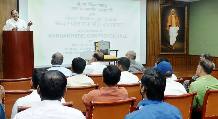 उपराष्ट्रपति वेंकैया नायडु ने कहा कि उनमें कौटिल्य की कूटनीतिज्ञता तथा महाराज शिवाजी की दूरदर्शिता थी, वे केवल सरदार ही नहीं, बल्कि भारतीयों के हृदय सरदार थे। वेंकैया नायडु ने कहा कि लोकतंत्र के लिए संसद के अंदर और बाहर विचार-विमर्श, बातचीत, विचारों का संगम बहुत महत्वपूर्ण है। इस अवसर पर उपराष्ट्रपति ने सभागार का निर्माण तीन महीने में पूरा करने के लिए शहरी विकास मंत्रालय, केंद्रीय लोकनिर्माण विभाग, शिरके ग्रुप और एनडीएमसी की सराहना की। उन्होंने कहा कि यहां पर सांस्कृतिक कार्यक्रमों का आयोजन भी किया जाएगा। सम्मेलन सभागार में उपराष्ट्रपति ने विदेशी प्रतिनिधिमंडलों और विभिन्न प्रतिनिधियों से बातचीत भी की।