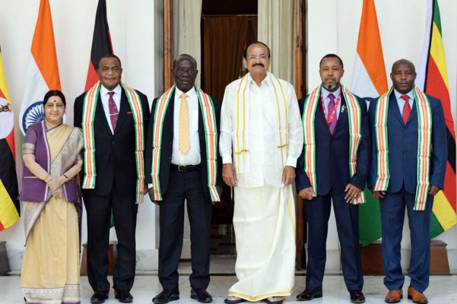 उपराष्ट्रपति एम वेंकैया नायडू ने अफ्रीकी देशों के राष्ट्राध्यक्षों को पारंपरिक अंगवस्त्रम प्रदान किए और उन्हें भारत की समृद्ध सांस्कृतिक विरासत के बारे में जानकारी देते हुए कहा कि भारत में अतिथियों को भगवान के समान माना जाता है-अतिथि देवो भवः। वेंकैया नायडू ने भारत और विभिन्न अफ्रीकी देशों के बीच बढ़ती दोस्ती और द्विपक्षीय संबंधों पर प्रसन्नता व्यक्त की। उन्होंने कहा कि भारत की विकास यात्रा में अफ्रीकी देशों की भूमिका उल्लेखनीय है। अफ्रीकी राष्ट्राध्यक्षों ने शानदार आतिथ्य के लिए उपराष्ट्रपति को धन्यवाद दिया और उनको अफ्रीकी देशों की यात्रा पर आमंत्रित भी किया। इस अवसर पर विदेश मंत्री सुषमा स्वराज भी उपस्थित थीं।