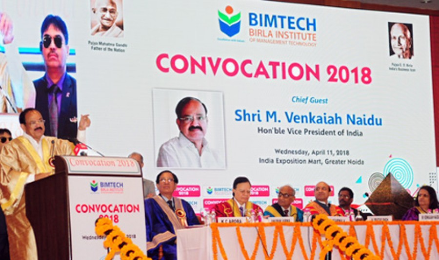 नोएडा। उपराष्ट्रपति एम वेंकैया नायडू ने बिरला प्रबंध एवं प्रौद्योगिकी संस्थान नोएडा के वार्षिक दीक्षांत समारोह को संबोधित करते हुए कहा है कि सही शिक्षा चरित्र, क्षमता, बुद्धि और आचरण के निर्माण में सहायक होती है। उपराष्ट्रपति ने कहा कि भारत की अत्यधिक युवा मानव संसाधन पूंजी हमारी सबसे बड़ी सम्पदा है और देश को राष्ट्र के जनसांख्यिकीय लाभांश का प्रभावशाली ढंग से उपयोग करने में समर्थ होना चाहिए। उन्होंने बताया कि यह सम्पन्न मानवीय सामर्थ्य है, जो कई गुणा शक्ति में तभी तब्दील हो सकती है, जब युवा वर्ग पर्याप्त कौशल और विशेषज्ञता हासिल कर लें, जो उद्योग, कृषि और सेवाओं जैसे विभिन्न क्षेत्रों की जरूरतों के अनुरूप हों।